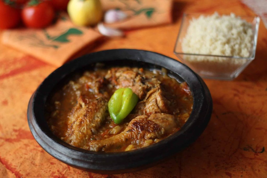 Le kédjénou est un plat emblématique de la Côte d’Ivoire, particulièrement apprécié par le super-peuple Akan constitué de peuples apparentés culturellement et linguistiquement. En côte d’Ivoire, les Akan représentent 38% de la population, dont font partie les Baoulés originaires du royaume d’Ashanti (Ghana) et qui sont présents essentiellement dans la région centrale (autour de Bouaké). Il est difficile de dater précisément l’origine historique du kédjénou, signifiant en Baoulé « remuer dedans », mais il s’agit d’une préparation ancestrale et traditionnelle, issue des pratiques culinaires de la brousse et du mode de vie agricole et de chasse des Baoulés. La cuisson en marmite en terre cuite (appelée « canari ») à l’étouffée, sans eau ajoutée, est très ancienne et caractéristique de ces populations, ce qui suggère une origine plusieurs siècles en arrière, bien avant la colonisation de la fin du XIXème siècle, au cœur de la culture Baoulé-Akan. Ce type de cuisson est intéressant car il permet de conserver tous les jus naturels de la viande et des légumes.