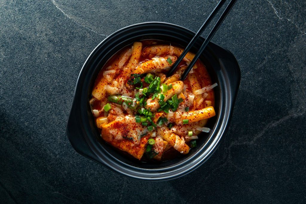 À côté de la version classique au gochujang et au bouillon d’anchois, apparaissent des déclinaisons : cheese tteokbokki, seafood tteokbokki, carbonara / rosé tteokbokki, ou encore des versions noires à la sauce de soja fermentée (jajang tteokbokki), qui mêlent influences occidentales et coréennes. Avec les dramas, les vlogs coréens et les réseaux sociaux, le plat devient une icône de la culture pop culinaire souvent associé en-cas après les cours et aux soirées entre amis. Il est donc aujourd’hui perçu en Corée comme un plat « doudou » intergénérationnel et un produit phare des cours de cuisine pour touristes.